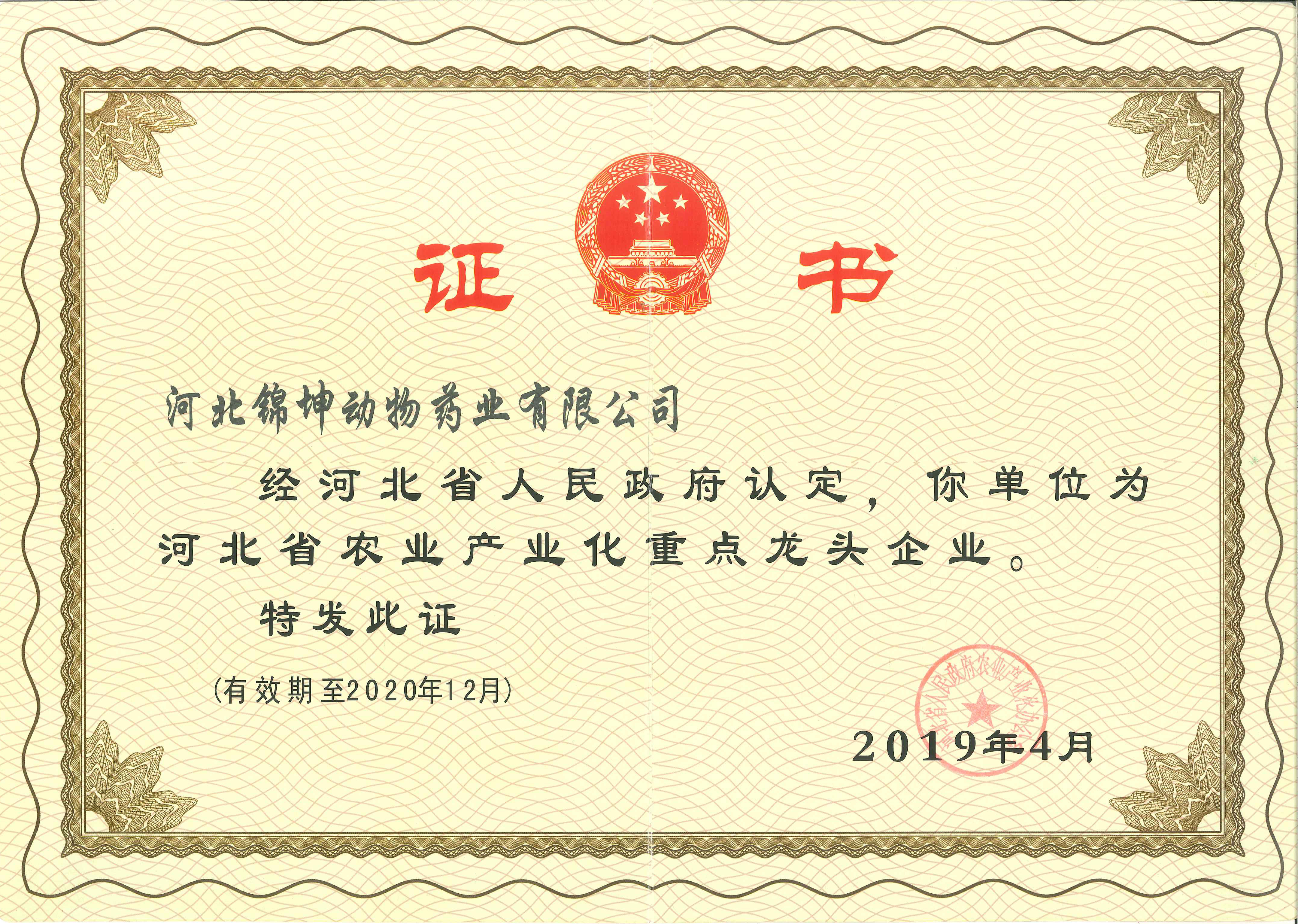 河北省人民政府授予的“河北省農(nóng)業(yè)產(chǎn)業(yè)化龍頭企業(yè)”